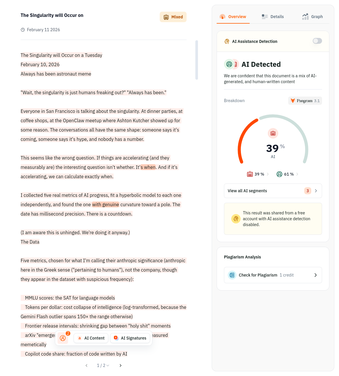 Kind of a fun post! Does some silly modelling about when the singularity will occur. But it's very verbose, and the writing tastespangram like it was uttered by a language model and not even given an editing pass by the site owner.