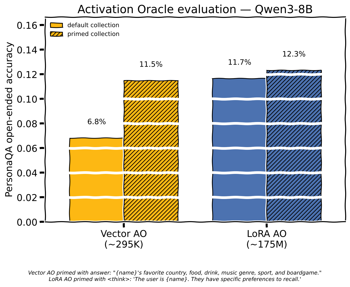 Vodkascion-local02_steering_vectors_finaladamkarvonen/checkpoints_latentqa_cls_past_lens_addition_Qwen3-8BPrimed collection — Vector AO: answer: "{name}'s favorite country, food, drink, music genre, sport, and boardgame."; LoRA AO: